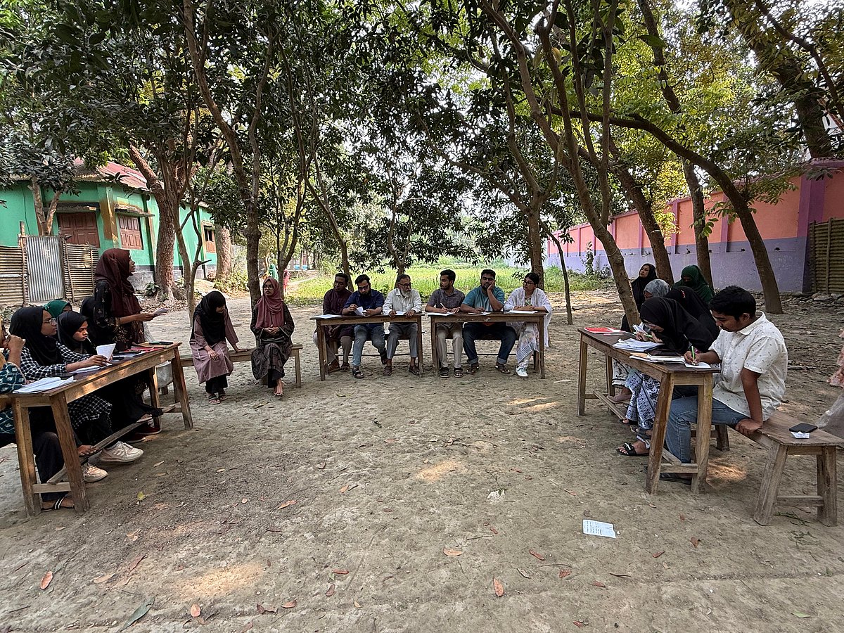 কোনো জমকালো হলরুমে নয়, ছিল না বড় মঞ্চ। শিক্ষক ওমর সরকারের বাড়ির গাছতলায় বেঞ্চ পেতেই টানা ১৫ দিন ধরে চলেছে বিতর্ক প্রতিযোগিতা।