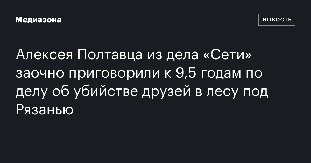 Алексея Полтавца из дела «Сети» заочно приговорили к 9,5 годам по делу об убийстве друзей в лесу под Рязанью