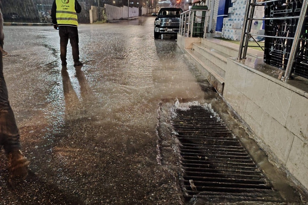 كوادر بلدية جرش تتعامل مع ملاحظات لتجمع المياه