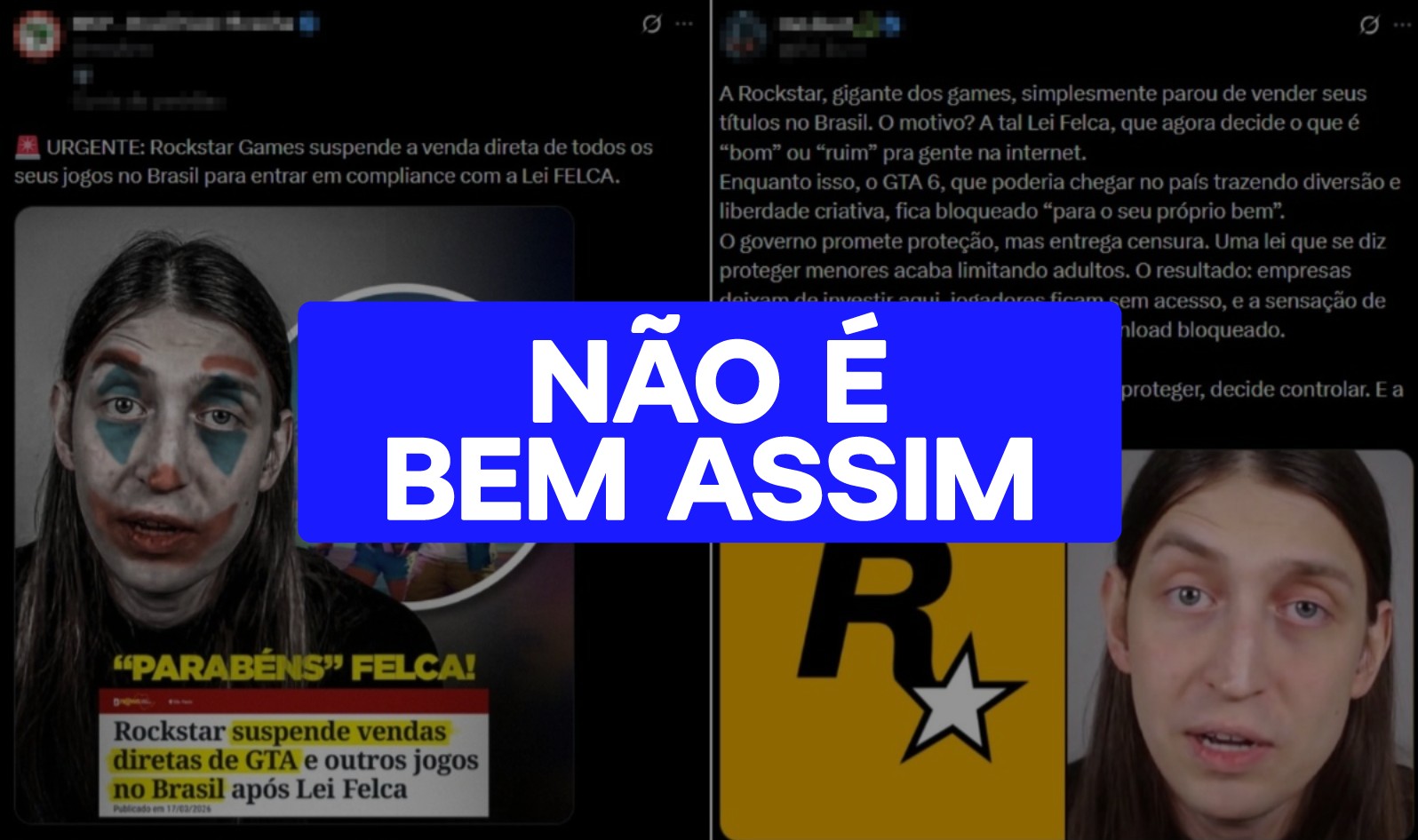 Circulam nas redes sociais publicações afirmando que a Rockstar Games, desenvolvedora americana de video-games, não irá mais comercializar seus títulos, incluindo o sexto volume da série Grand Theft Auto (GTA), no Brasil. As postagens, compartilhadas por perfis de direita e extrema-direita nas redes, associam a suposta desistência da empresa à entrada em vigor da lei 15.211/2025, o Estatuto da Criança e do Adolescente Digital (ECA Digital), apelidado de “Lei Felca”, em referência ao influenciador Felipe Bressanim, que viralizou em 2025 após publicar um vídeo sobre a adultização de menores nas redes sociais. A informação, no entanto, #NÃO É BEM ASSIM. É #FAKE que BYD contratou 10 mil chineses para formar ‘cidade’ na Bahia É #FAKE que Trump tenha suspendido a entrada de brasileiros após Lula cancelar visto de assessor americano Como é o post? As postagens afirmam que a empresa, que também assina as séries Red Dead e Max Payne, retirou as ofertas de seus jogos do país para cumprir com a regulamentação estabelecida pelo 'ECA Digital". Os posts, que incluem referências visuais e menções a Felca e ao presidente Lula, que sancionou a medida nesta quarta-feira, argumentam que o texto impõe a "censura' do jogo eletrônico para o público, incluindo maiores de idade. "É sempre a mesma história: quem deveria proteger, decide controlar. E a gente, que só queria jogar, paga o preço", diz uma publicação sobre o tema feita no Twitter #NÃO É BEM ASSIM: Postagens enganosas afirmam que GTA VI não será comercializado no Brasil após implementação da 'Lei Felca' Reprodução: X Por que é enganoso? As postagens são enganosas porque, apesar da nova regulamentação ter de fato obrigado o mercado de jogos eletrônicos a implementar medidas de verificação de idade e restrição de conteúdo +18, a Rockstar jamais anunciou que deixará de comercializar seus produtos no Brasil por completo. Em comunicado divulgado em 17 de março, a empresa anunciou que irá parar de vender jogos para o Windows diretamente a consumidores no Brasil por meio de sua loja digital própria, mas que as obras da empresa, incluindo Grand Theft Auto VI, previsto para ser lançado em novembro deste ano, continuarão disponíveis em mídia física e digital através de lojas eletrônicas como a PlayStation Store, a Microsoft Store e a Steam e poderão ser jogados normalmente em plataformas como PlayStation 5, Xbox Series X/S, Nintendo Switch 2 e PC. A mudança está relacionada às novas exigências da legislação brasileira, que determina que plataformas digitais adotem mecanismos mais rigorosos de verificação de idade. Segundo o texto, métodos baseados apenas em autodeclaração — como o tradicional botão “tenho mais de 18 anos” — não são suficientes, sendo necessário implementar sistemas mais confiáveis. Para evitar adaptações técnicas imediatas, algumas empresas têm optado por restringir serviços no Brasil ou limitar o acesso de menores. No caso da Rockstar, a decisão foi suspender as vendas diretas no país via PC. Ainda assim, microtransações dentro de jogos, como conteúdos adicionais de modos online, não serão afetadas. Assim, a ideia de que GTA 6 não será vendido no Brasil é enganosa: o jogo seguirá disponível no país, mas com mudanças pontuais na forma como algumas empresas operam seus serviços digitais.