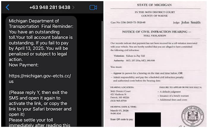 Scammers are continuing to target Michigan residents with fake texts about unpaid tolls and tickets, prompting a renewed warning about these schemes.