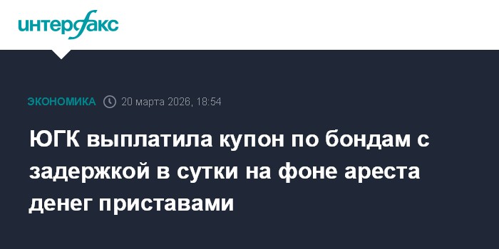 ПАО "ЮГК" сообщило о выплате купона по облигациям серии 001P-05 с задержкой в сутки на фоне ареста денежных средств.