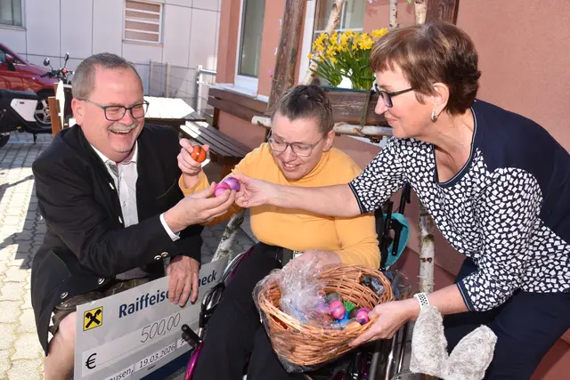 Nicht zum ersten Mal stellte sich Gemeinderat Franz Leitner als Spender beim Förder- und Therapiezentrum Waldhausen ein. WALDHAUSEN. Franz Leitner spendete sein Gemeinderats-Sitzungsgeld 2025. Er überbrachte Maria Klammer, Obfrau des Elternvereins, 500 Euro. Kurz vor Ostern durften auch bunte Ostereier für Klienten und Mitarbeiter nicht fehlen. „Ich habe zwei gesunde Kinder. Da war und ist es für mich immer ein Anliegen, diese Vorzeigeeinrichtung in unserer Gemeinde zu unterstützen“, sagte...