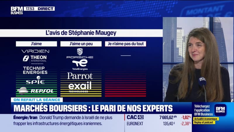 Ce vendredi 20 mars, Stéphanie Maugey, gérante privée Financière d'Uzès, et Julien Quistrebert, gérant chez Tailor AM, ont débriefé la séance du jour, dans l'émission BFM Bourse présentée par Guillaume Sommerer. BFM Bourse est à voir ou écouter du lundi au vendredi sur BFM Business.