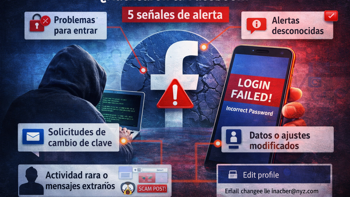 Problemas para iniciar sesión, alertas desconocidas y actividad extraña en Facebook pueden ser señales de que otra persona tomó el control de tu cuenta.
