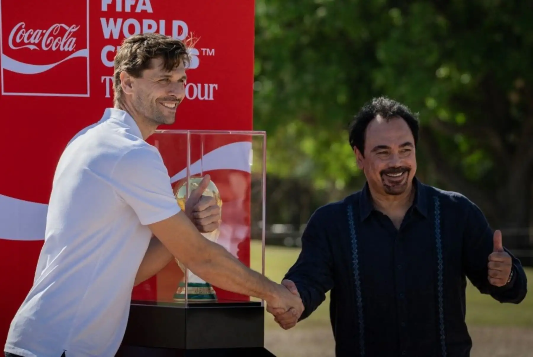 Dos figuras unidas levantando el mundo, fundidas en seis kilogramos de oro macizo. El trofeo del Mundial de fútbol fue presentado este viernes en el complejo arqueológico maya de Chichén Itzá en el marco de su gira previa al inicio de la competición.
