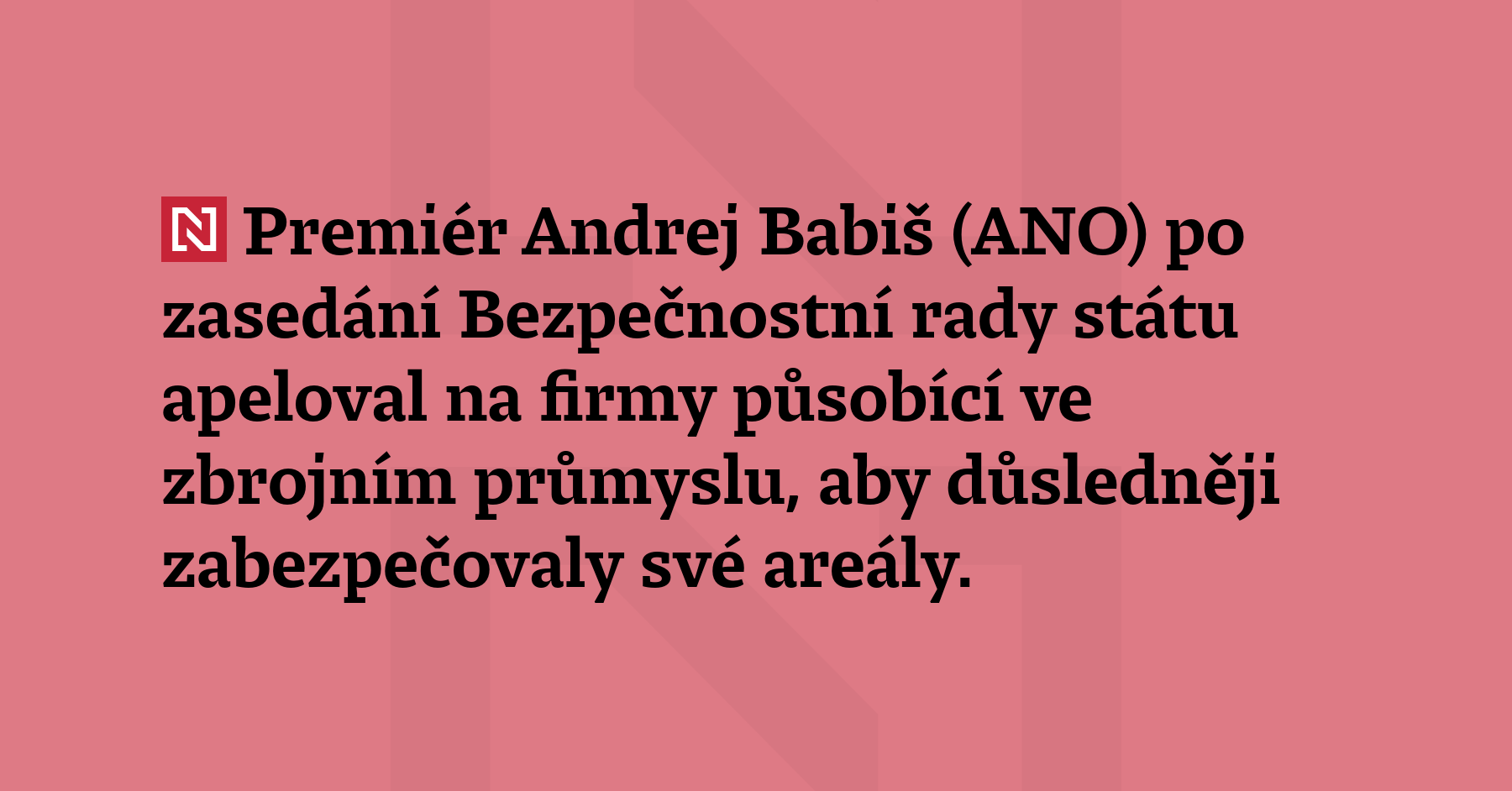 Premiér Andrej Babiš (ANO) po zasedání Bezpečnostní rady státu apeloval na firmy působící ve zbrojním průmyslu, aby důsledněji zabezpečovaly své areály. Areál pardubické firmy podle něj dostatečně zabezpečen nebyl. (ČT24)