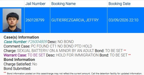 Guatemalteco capturado en Florida por presunto abuso a menor