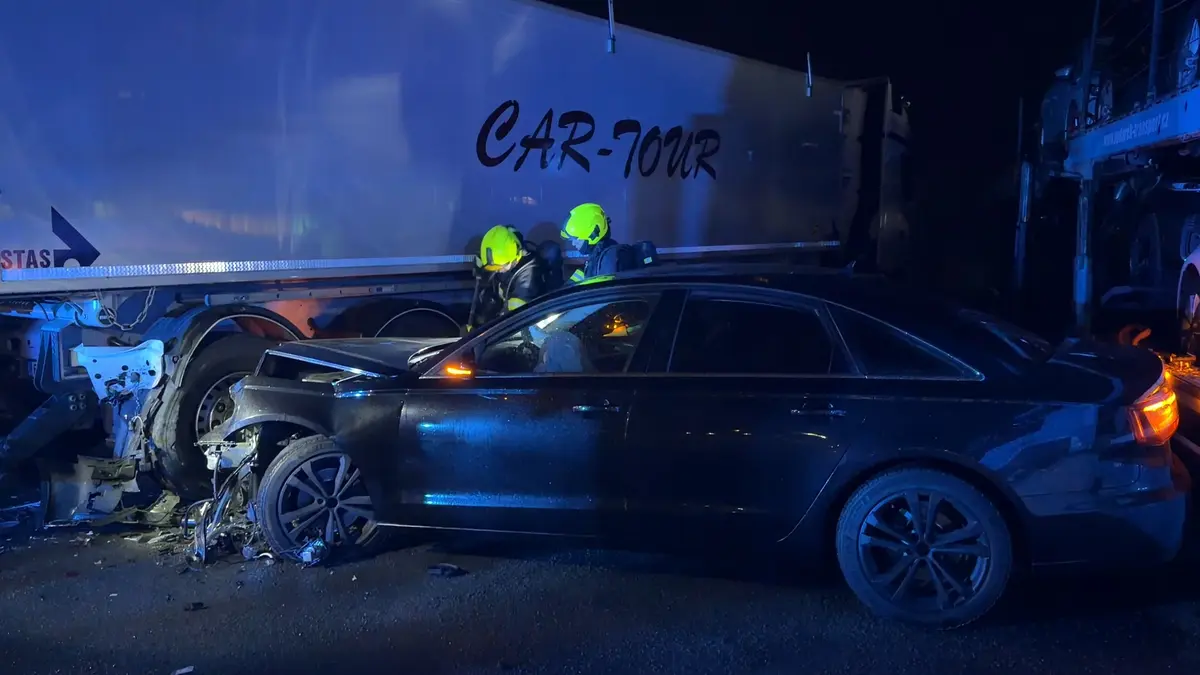 Hasiči i policisté zasahovali v pátek večer na okraji Jinočan na Praze-západ, kde doposud neznámý řidič s audi naboural do zaparkovaného kamionu. Z místa pak podle svědků měli utéct tři lidé, z nichž jeden se po chvíli vrátil zpátky.