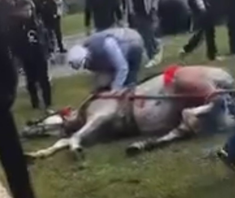 Adana'da bir kişi, koşmadığını iddia ettiği arabaya bağlı olan atını sopa ve tekmeyle bayılttı. O anlar cep telefonu kamerasıyla görüntülendi.
