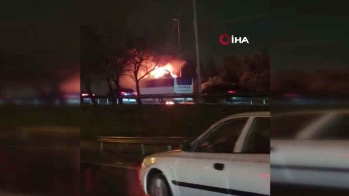 İstanbul Bağcılar'da TEM Otoyolu üzerinde seyir halindeki bir yolcu otobüsünde çıkan yangın paniğe neden oldu. Kısa sürede alevlere teslim olan otobüsün yanma anları cep telefonu kamerasına yansıdı.