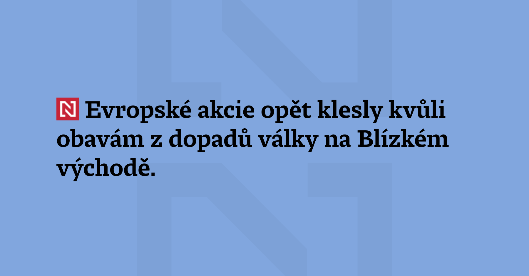 Evropské akcie opět klesly kvůli obavám z dopadů války na Blízkém východě. Německý index DAX odepsal dvě procenta a uzavřel nejníže od loňského dubna. (ČTK)