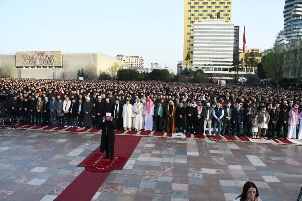 Rreth 120 mijë besimtarë myslimanë në Shqipëri kryen faljen e namazit në festën e Fitër Bajramit. Në Tiranë, besimtarët u falën në “Sheshin Skënderbej”. Disa pamje mahnitëse me dron u shpërndanë edhe nga fotografi i Reuters.