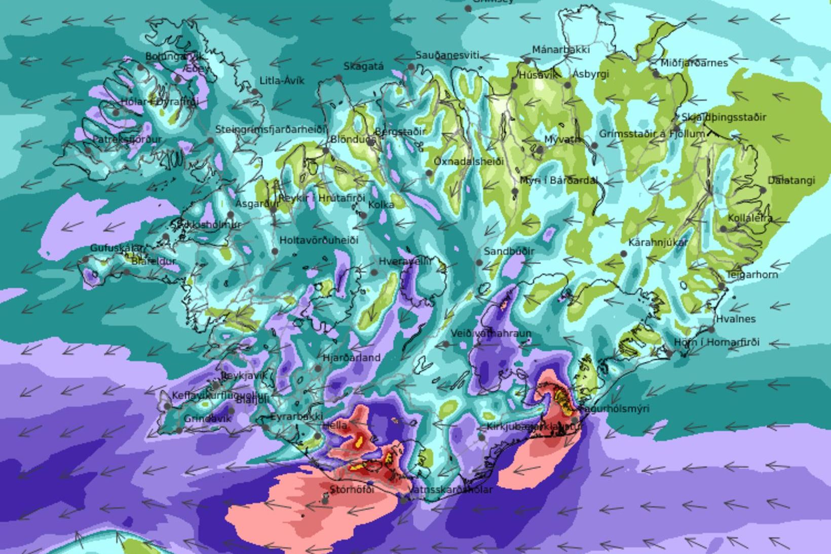 Ekkert lát verður á leiðindaveðri hér á landi næstu daga. Búast má við áframhaldandi lægðum og kulda fram í næstu viku.