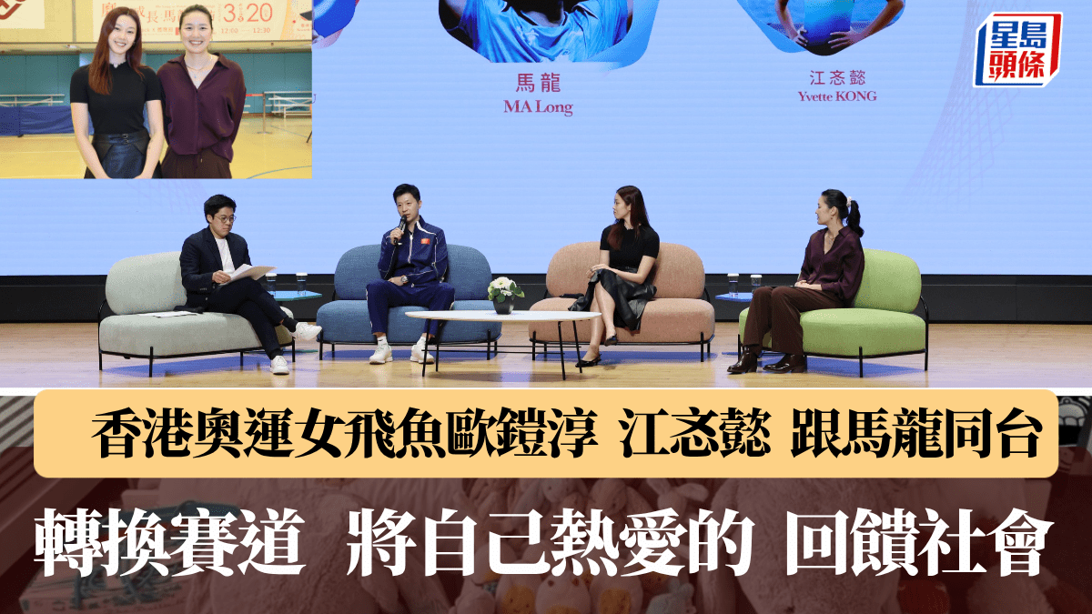 乒球界奧運6金得主、中國的馬龍周五應邀到理工大學出席「與奧運健兒對話:傳承奧運精神」提到「找到心中的熱愛,不斷追求卓越」,同場的2位香港奧運游泳代表包括5屆奧運代表歐鎧淳(Stephanie)及里奧代表江忞懿(Yvette)分別在自己熱愛的領域追求卓越,並鼓勵年青一輩勇敢跳出框架,像他們嚐試其他賽道,一樣可以發光發亮。 兩位同為33歲 的女飛魚不約同被同場的馬龍敫發,Yvette表示對馬龍說到的「