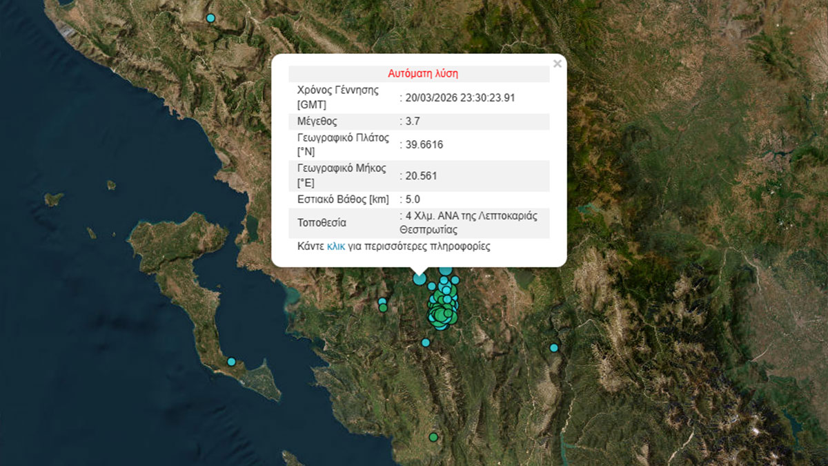 Σεισμός 3,7 Ρίχτερ στη Λεπτοκαριά Θεσπρωτίας