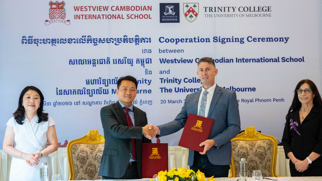 ការចុះហត្ថលេខាលើកិច្ចសហប្រតិបត្តិការរវាង សាលាអន្តរជាតិ វេសវីយូ កម្ពុជា និង មហាវិទ្យាល័យ Trinity នៃសាកលវិទ្យាល័យ Melbourne