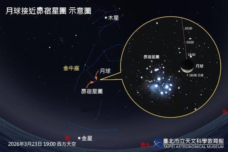 春季抬頭望就有精彩天象!台北市立天文館表示,下週起將有一連串月球與多個亮眼星體近距離接近的天象,構成景緻浪漫又容易觀賞的「星月共舞」畫面,為日常夜晚增添一抹驚喜。天文館表示,這...…