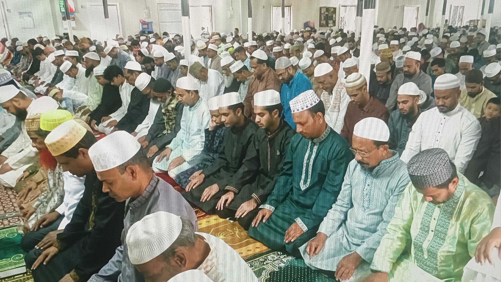 বৃষ্টির কারণে রাজশাহীতে এবার ঈদুল ফিতরের প্রধান জামাত ঈদগাহ ময়দানের পরিবর্তে মসজিদে অনুষ্ঠিত হয়েছে। দীর্ঘ এক মাস সিয়াম সাধনার পর সুষ্ঠুভাবে ঈদের নামাজ আদায় শেষে দেশ ও জাতির কল্যাণ কামনা করে মোনাজাত করেছেন মুসল্লিরা।শনিবার (২১ মার্চ) সকাল ৮টায় রাজশাহীর শাহ মখদুম দরগা মসজিদে ঈদের এই প্রধান জামাত অনুষ্ঠিত হয়। মূলত শাহ মখদুম কেন্দ্রীয় ঈদগাহ ময়দানে জামাতটি অনুষ্ঠিত হওয়ার কথা থাকলেও বৈরী আবহাওয়ার কারণে স্থান পরিবর্তন করা হয়। এদিন নামাজ শুরুর আগেই দলে দলে মুসল্লিরা মসজিদে উপস্থিত হন। ঈদের এই প্রধান জামাতে অংশ নেন ভূমিমন্ত্রী মিজানুর রহমান মিনু, রাজশাহী সিটি কর্পোরেশনের প্রশাসক মাহফুজুর রহমান রিটনসহ প্রশাসনের ঊর্ধ্বতন কর্মকর্তারা। নামাজ শেষে সর্বস্তরের মানুষ সুষ্ঠুভাবে ঈদুল ফিতরের জামাত আদায় করতে পেরে সন্তোষ প্রকাশ করেন। আরও পড়ুন: রাজশাহীতে ১৫ দিনের বিশেষ মশক নিধন কার্যক্রম শুরু এ সময় ভূমিমন্ত্রী মিজানুর রহমান মিনু সমাজের বিত্তবানদের ঈদে অসহায়, দুস্থ ও গরিব মানুষের পাশে দাঁড়ানোর আহ্বান জানান। তিনি বলেন, ‘তাহলে সকলে মিলে ঈদ আনন্দ ভাগাভাগি করা সম্ভব হবে।’ অন্যদিকে রাজশাহী সিটি কর্পোরেশনের প্রশাসক মাহফুজুর রহমান রিটন বলেন, ‘মহানগরীর ছয়টি স্থানে ঈদের জামাত আদায়ের জন্য প্রস্তুত করা হয়েছিল। তবে শুক্রবার রাত থেকেই বৃষ্টির কারণে বিকল্প জায়গায় ঈদের নামাজ আদায়ের ব্যবস্থা করা হয়েছে।’