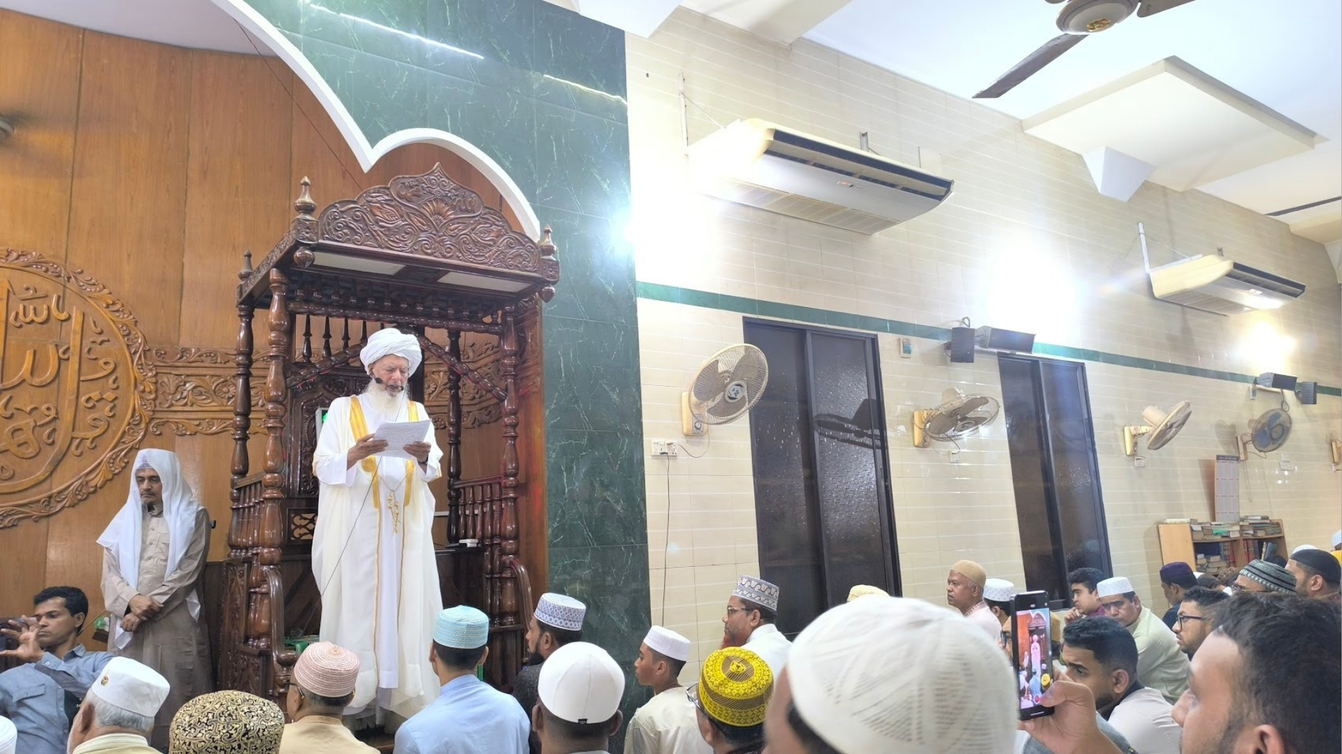 বৃষ্টিস্নাত সকালে খুলনায় পবিত্র ঈদুল ফিতরের প্রধান জামাত অনুষ্ঠিত হয়েছে। বৈরী আবহাওয়ার কারণে নির্ধারিত ঈদগাহ ময়দানের পরিবর্তে মসজিদে এই জামাত আদায় করেন মুসল্লিরা। নামাজ শেষে ফিলিস্তিনসহ বিশ্বের নিপীড়িত মুসলিম উম্মাহর জন্য বিশেষ দোয়া করা হয়।শনিবার (২১ মার্চ) সকাল ৮টায় নগরীর টাউন জামে মসজিদে এই প্রধান ঈদ জামাত অনুষ্ঠিত হয়। মধ্যরাত থেকে শুরু হওয়া বৃষ্টিপাতের কারণে খোলা মাঠে জামাত আয়োজন সম্ভব হয়নি। তাই শেষ মুহূর্তে সার্কিট হাউজ ময়দান থেকে স্থান পরিবর্তনের সিদ্ধান্ত নেয় সংশ্লিষ্ট কর্তৃপক্ষ। প্রতিকূল আবহাওয়া উপেক্ষা করেই সকাল ৭টা থেকে দলে দলে মুসল্লিরা মসজিদে আসতে শুরু করেন। অনেকেই ছাতা মাথায়, কেউবা ভিজে অবস্থায়ই মসজিদে উপস্থিত হয়ে ঈদের নামাজে অংশ নেন। টাউন জামে মসজিদে অনুষ্ঠিত প্রধান জামাতে ইমামতি করেন মাওলানা মো. সালেহ। এছাড়া একই মসজিদে সকাল ৯টা ও ১০টায় আরও দুটি অতিরিক্ত জামাত অনুষ্ঠিত হয়। সেখানেও বিপুল সংখ্যক মুসল্লি অংশ নেন। আরও পড়ুন: খুলনায় ঘুমন্ত অবস্থায় একই পরিবারের ৪ জনকে গুলি জামাত শেষে দেশ ও জাতির শান্তি, অগ্রগতি ও সমৃদ্ধি কামনা করে বিশেষ মোনাজাত করা হয়। একই সঙ্গে ইরান ও ফিলিস্তিনসহ বিশ্বের বিভিন্ন প্রান্তে নিপীড়িত মুসলিমদের জন্য দোয়া করা হয়। নামাজ শেষে মুসল্লিরা একে অপরের সঙ্গে কোলাকুলি ও শুভেচ্ছা বিনিময়ের মাধ্যমে ঈদের আনন্দ ভাগাভাগি করেন। বৃষ্টির মধ্যেও ঈদের এই মিলনমেলা নগরজুড়ে সৃষ্টি করে এক ভিন্ন আবহ। এদিকে খুলনা সিটি কর্পোরেশনের উদ্যোগে নগরীর ৩১টি ওয়ার্ডে ঈদের জামাত অনুষ্ঠিত হয়। খুলনা আলিয়া মাদ্রাসা মডেল মসজিদ, বায়তুন নূর মসজিদসহ বিভিন্ন মসজিদে মুসল্লিদের উপচেপড়া ভিড় লক্ষ্য করা যায়।