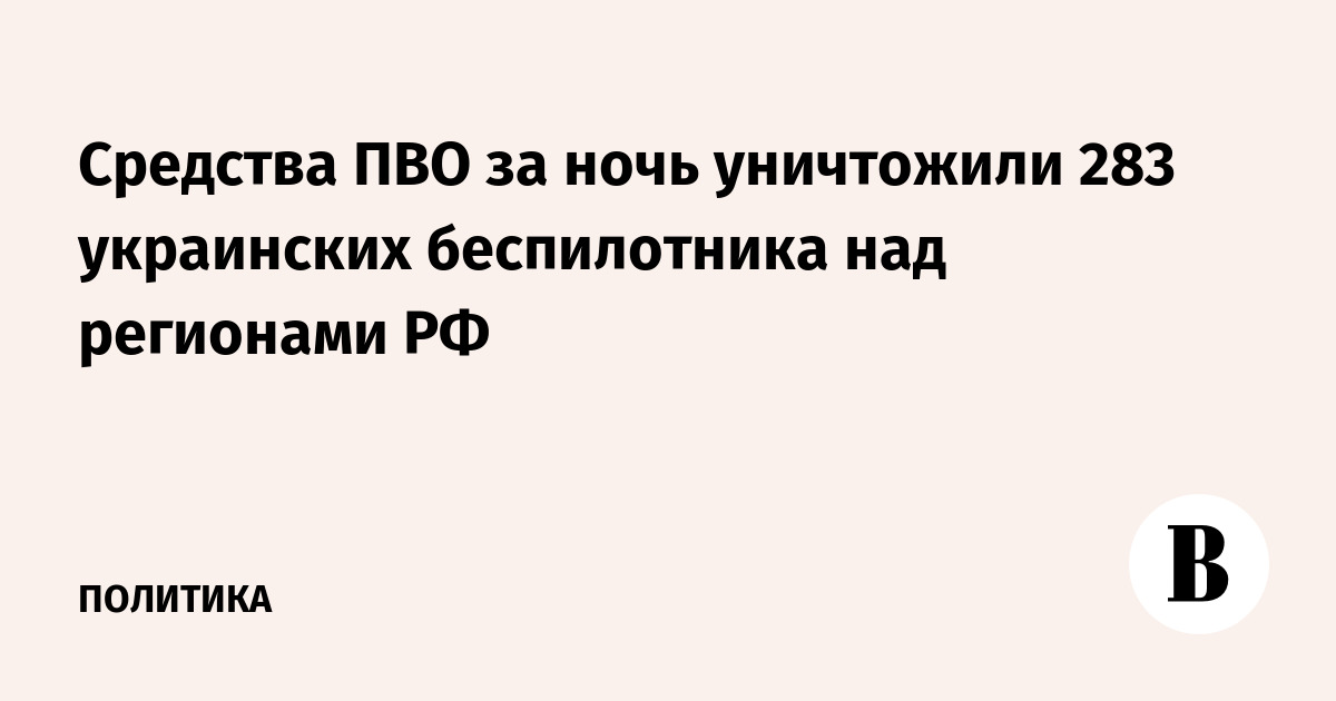 Средства ПВО за ночь уничтожили 283 украинских беспилотника над регионами РФ