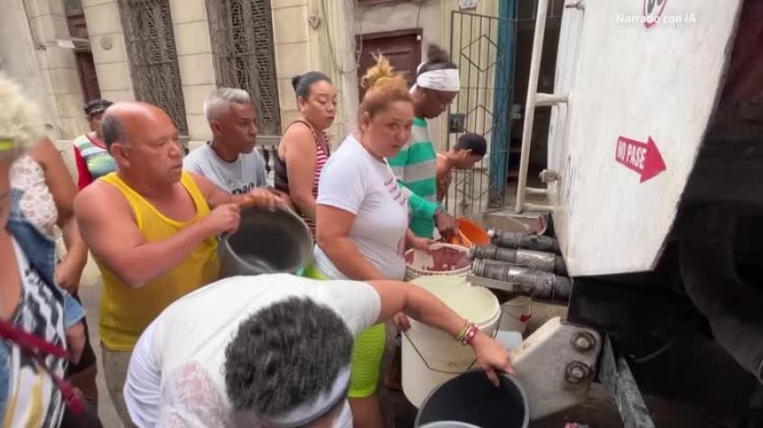 Cubanos hacen cola para conseguir agua en La Habana en medio de la crisis de combustible y electricidad