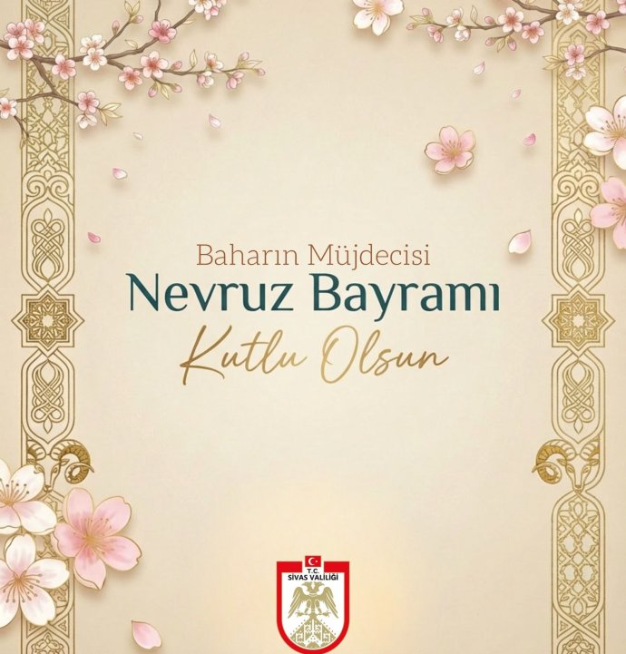 Sivas Valiliği, Nevruz Bayramı dolayısıyla yayımladığı mesajda, baharın gelişiyle birlikte doğanın yeniden canlandığını belirterek, birlik, kardeşlik ve dayanışma duygularının güçlenmesi temennisinde bulundu.