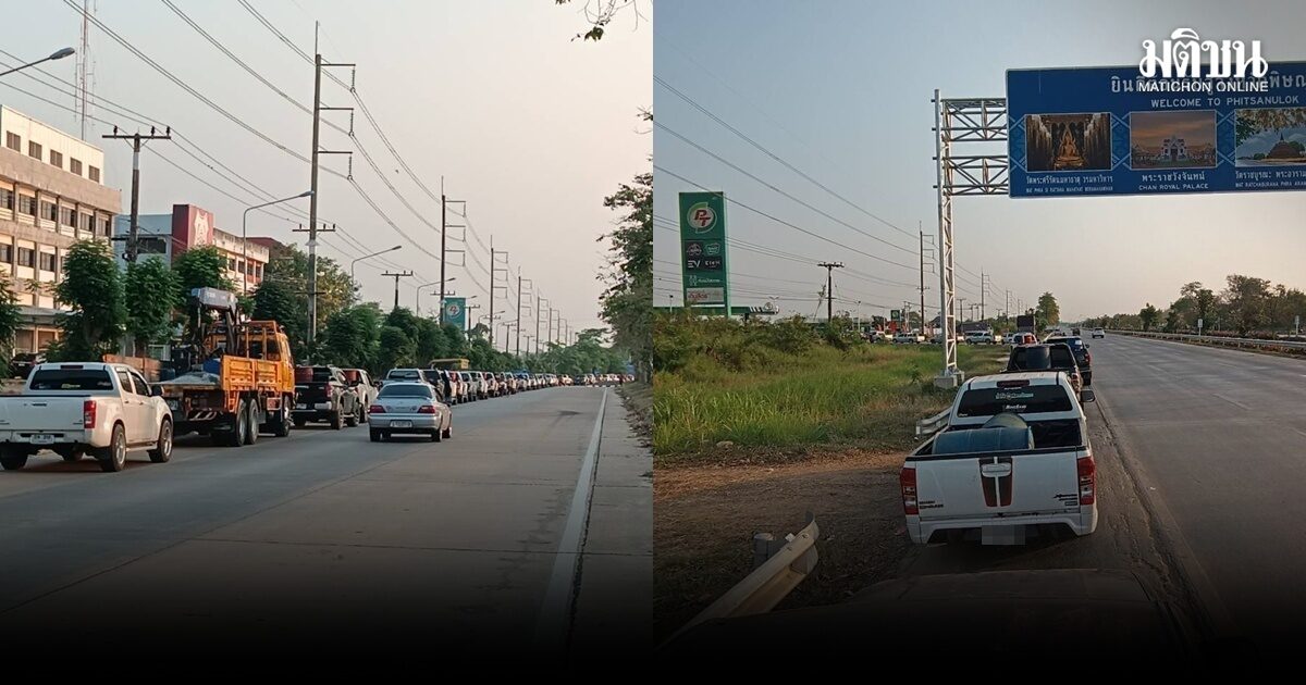 ชาวพิษณุโลกต่อแถวเติมน้ำมัน ยาวกว่า 5 กิโล บางคนมารอตั้งแต่ 2 ทุ่มเมื่อคืน วอนรบ.แก้ปัญหาด่วน