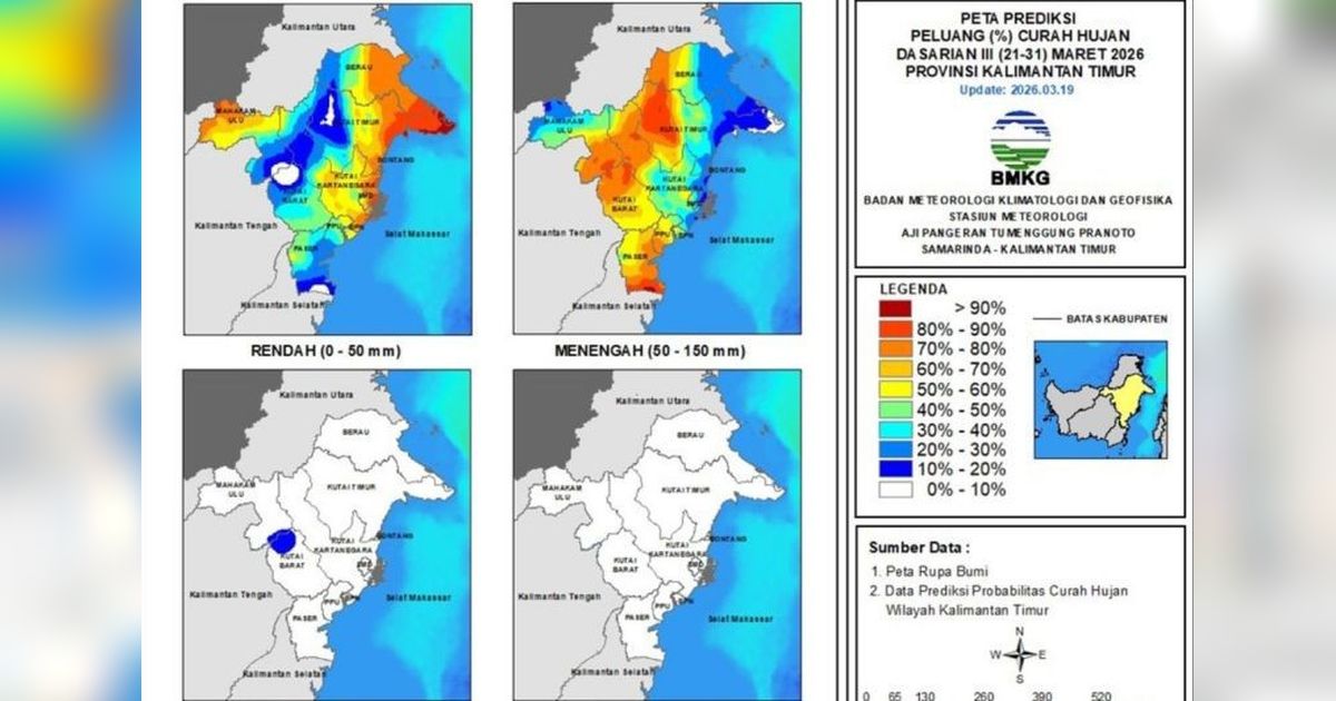 BMKG Stasiun APT Pranoto Samarinda memprakirakan sejumlah wilayah di Kalimantan Timur akan mengalami hujan ringan saat Libur Lebaran 2026, namun kewaspadaan tetap diperlukan di beberapa daerah.