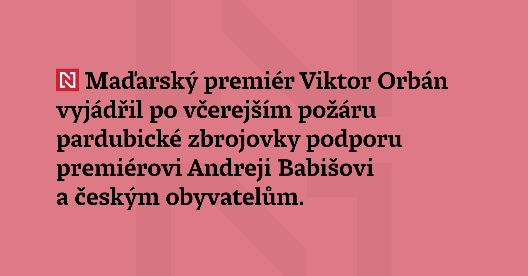 Maďarský premiér Viktor Orbán vyjádřil po včerejším požáru pardubické zbrojovky podporu premiérovi Andreji Babišovi a českým obyvatelům. „Teroristický útok v Česku je varování,“ napsal na sociální síti X. Babiš se měl dnes účastnit konzervativního fóra CPAC Maďarsko, které Orbán pořádá v Budapešti. Po útoku v Pardubicích, ke kterému se přihlásila neznámá skupina, se však premiér vrátil zpět do Česka.