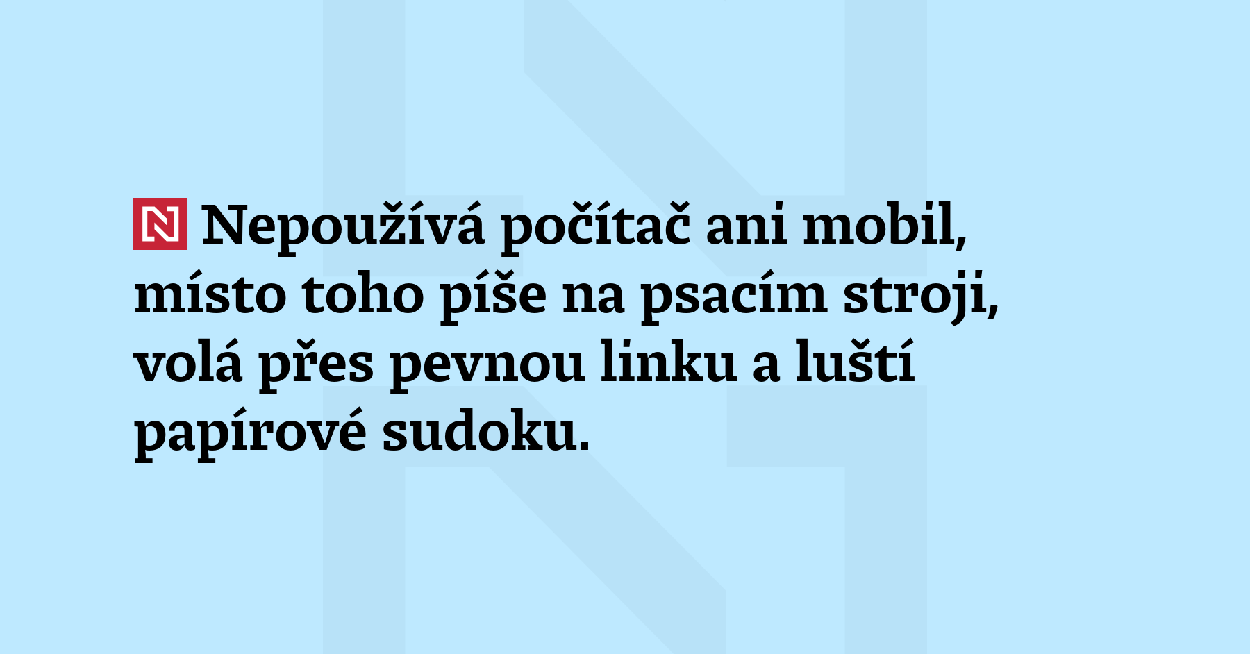 Nepoužívá počítač ani mobil, místo toho píše na psacím stroji, volá přes pevnou linku a luští papírové sudoku. Život Jarmily Konečné se odehrává naprosto offline a seniorka na tom nic nechce měnit. „Co bych asi na internetu chtěla hledat?“ podivuje se.