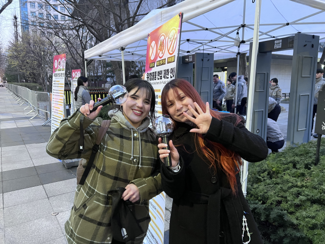 21일 서울 종로구 광화문광장 일대는 그룹 방탄소년단(BTS)의 복귀 공연을 앞두고 거대한 K팝 공연장으로 탈바꿈할 채비를 마쳤다. 4년 만의 완전체 무대를 앞두고 공연 시작 수시간 전부터 ‘아미’(BTS 공식 팬덤)들이 광장을 채우며 일대는 보랏빛 물결로 물들었다. 현장의 열기는 미국 뉴욕 등 세계 곳곳으로 번지며 시차를 뛰어넘은 기대감으로 이어졌다. 경찰과 소방 등 관계 당국은 새벽부터 인파 관리에 나서며 안전한 공연 준비에 총력을 기울였다. 광화문 새벽을 깨운 아미들의 열기 서울 아침 최저기온이 영상 2도까지 떨어진 21일, 쌀쌀한 날씨에도 칼리(31·칠레 산티아고)는 서울 종로구 광화문광장을 새벽 3시부터 지켰다. 경북대 유학생인 그는 그룹 방탄소년단(BTS)을 좋아해 한국에서 1년간 워킹홀리데이를 마친 뒤 한국어 공부를 이어왔다고 한다. 칼리는 “칠레의 겨울처럼 옷을 여러 겹 껴입고 만반의 준비를 했다”며 “BTS를 기다리는 사람들의 열기 덕분에 춥지 않다”고 말했다. 입김이 나고 콧물이 흐를 만큼 추운 날씨에도 팬들의 표정에는 설렘과 기대감이 가득했다. 서로 국적은 달라도 ‘방탄’이라는 공통된 이름으로 자연스럽게 말을 트며 함께 시간을 보내는 모습도 곳곳에서 보였다. 칼리와 같은 도시 출신인 스칼렛(28) 역시 보조배터리 3개를 챙기는 등 하루 종일 머물 준비를 마쳤다. 라인댄스 강사 정지아(51)씨는 광장에서 BTS 음악에 맞춰 춤을 췄다. 그는 이날을 위해 2주 전부터 안무를 연습해왔다고 했다. 정씨는 “BTS와 한국을 사랑하는 마음으로 추위도 이겨낼 수 있다”며 “라인댄스 동호회 회원들과 함께 역사적인 순간을 체감하러 나왔다”고 웃었다. 정씨를 포함한 6명의 회원들은 추위에도 외투를 벗고 오색 한삼을 걸친 채 공연을 기다렸다. 일대는 일찌감치 ‘보랏빛’ 물결 보라색 후드티를 입거나 머리끈, 가방, 풍선 등 저마다 보라색 소품 하나쯤은 몸에 두른 모습도 눈에 띄었다. 무슬림인 나지아(36·브루나이)는 이슬람 전통 의상인 ‘아바야’를 보라색으로 맞춰 입고 21일 서울 종로구 광화문광장을 찾았다. 귀를 덮고 얼굴만 드러내는 아바야는 대개 무채색이 많지만, 그룹 방탄소년단(BTS)의 광화문 공연을 기념해 특별히 보라색으로 준비했다고 한다. 나지아는 “국적과 종교, 문화는 모두 다르지만 BTS를 사랑하는 마음만큼은 ‘아미’(BTS 공식 팬덤)가 모두 같다”고 말했다. 연보라색 한복 치마를 입은 김주하(15)양은 보라색 나비 모양 비녀를 꽂고 보라색 아미밤(BTS 공식 응원봉)을 들고 있었다. 충남 천안시에 사는 김양은 이날 오전 7시 전철을 타고 어머니와 함께 서울로 올라왔다고 했다. 김양은 “관계가 뜻대로 풀리지 않거나 크고 작은 고민으로 힘들 때 BTS 음악이 큰 위로가 됐다”며 “불안했던 시간을 지탱해 준 BTS에 고마운 마음을 전하고 싶다”고 했다. 일간지들이 BTS 광화문 공연을 기념해 배포한 특별판도 아미들 사이에서 ‘굿즈’로 자리 잡았다. 서울신문 BTS 특별판 표지에는 2022년 10월 15일 부산아시아드주경기장에서 열린 콘서트 장면이 담겼다. 보랏빛 무대 조명이 강조된 표지는 BTS의 상징색을 부각해, 관련 굿즈를 수집하는 아미들 사이에서 특히 높은 관심을 끌었다. 일본 오사카에서 온 야스코(62)는 특별판을 들고 기념촬영을 하며 “보라색 굿즈가 하나 더 생겨 기쁘다”고 말했다. 광화문 일대 건물에도 BTS와 아미를 환영하는 보라색 현수막이 일찌감치 내걸렸다. 중구 프레스센터에는 “BTS♥ARMY 광화문에서 하나 되다. BTS의 컴백을 축하합니다”라는 문구의 대형 현수막이 걸렸다. 지구 반대편서도 아미 열기 ‘후끈’ 미국 뉴욕에 사는 김혜정(39)씨는 현지시간 21일 오전 7시 그룹 방탄소년단(BTS)의 컴백 무대를 집에서 실시간 시청할 계획이다. 주말 이른 아침, 아직 잠도 덜 깬 시간에 자녀들과 특별한 추억을 쌓기 위해서다. 김씨는 “지금도 심장이 두근거린다”며 “아이들과 함께 먹을 간식도 준비했지만 긴장돼 제대로 먹을 수 있을지 모르겠다”고 말했다. 온라인에는 “텍사스에 살아서 새벽 6시에 라이브를 볼 예정”, “하와이는 새벽 1시지만 잠 안 자고 본다”는 반응이 이어졌다. 시차를 감수하면서도 복귀 무대를 놓치지 않으려는 전 세계 ‘아미’(BTS 공식 팬덤)의 기대감이 온라인 곳곳에서 확인된다. 국내에서도 주말 저녁 광화문을 찾지 못한 시민들이 각자의 공간에서 공연을 즐길 준비에 나섰다. 경기 수원시에 사는 정모(43)씨는 “마음만은 이미 광화문 이순신 동상 앞에 가 있다”면서도 “주말에도 일을 해야 해 시간과 체력이 부담돼 집에서 보기로 했다”고 말했다. 그는 딸과 아내, 동네 친구들을 불러 함께 실시간 공연을 시청할 예정이다. 대형 스크린을 갖춘 일부 식당들도 손님들과 함께 공연을 즐길 계획이다. 서울 강동구 명일동에서 와인바를 운영하는 김윤설(52)씨는 “세계가 주목하는 무대를 보다 편하게 즐길 수 있도록 대형 스크린으로 중계할 예정”이라고 했다. 가로 3m·세로 2m 규모의 스크린과 빔프로젝터를 갖춘 김씨의 매장에서는 약 100석 규모의 관객이 현장 못지않은 분위기를 느낄 수 있을 것으로 보인