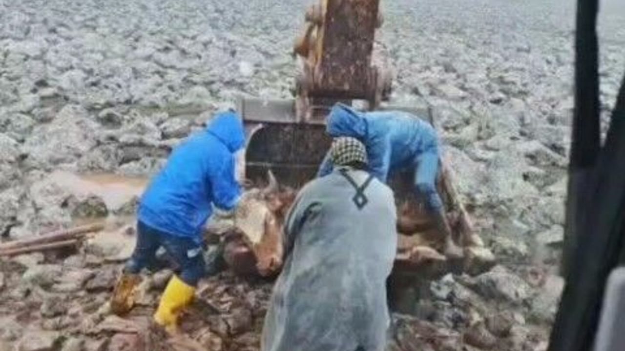Şanlıurfa’nın Viranşehir ilçesinde çamura saplanan inek, belediye ekiplerinin kepçe desteğiyle kurtarılarak sahibine teslim edildi.