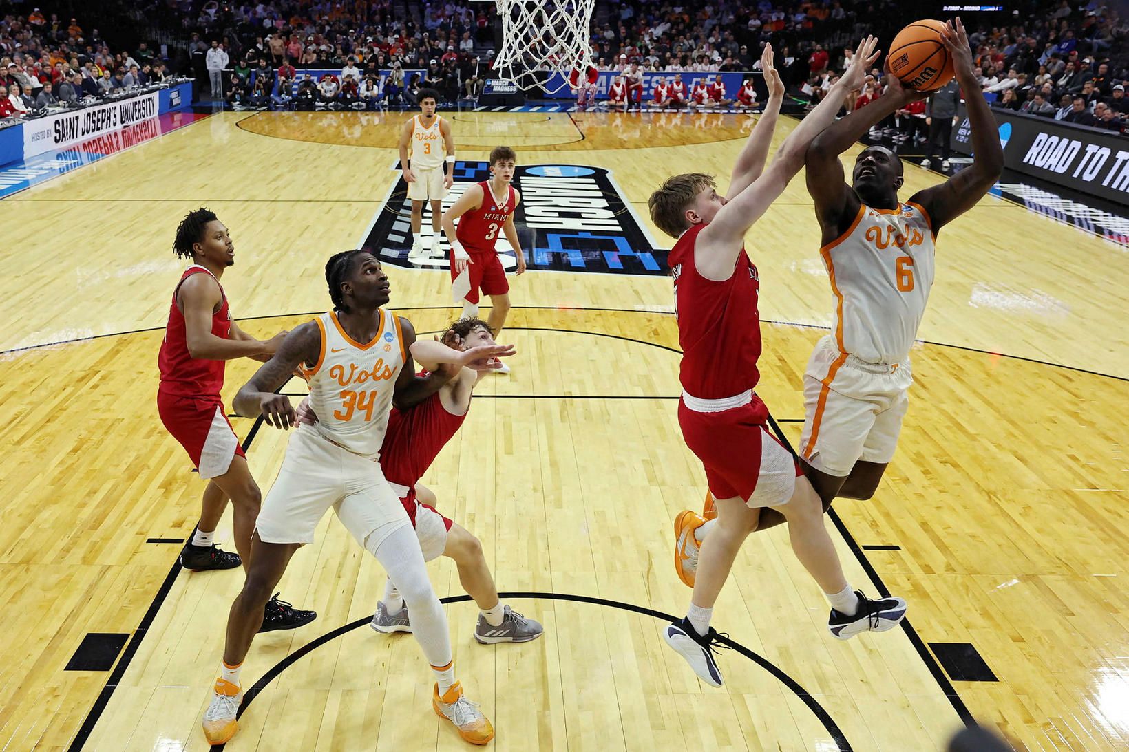 Almar Orri Atlasson og félagar hans í Miami University máttu þola tap gegn Tennessee, 78:56, í nótt og eru því úr leik í útsláttarkeppni háskólakörfubolta Bandaríkjanna.