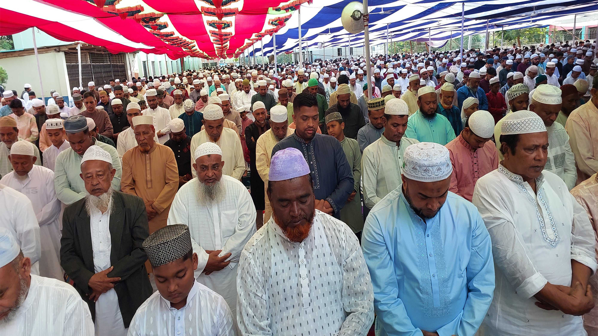 রাঙ্গামাটিতে ধর্মীয় ভাবগাম্ভীর্য, উৎসাহ উদ্দীপনার মধ্য দিযে পবিত্র ঈদ-উল ফিতরের জামাত অনুষ্ঠিত হয়েছে ।শনিবার সকালে শহরের ঈদের প্রথম জামাত অনুষ্ঠিত হয় শহরের কোর্ট বিল্ডিং মাঠে।এক মাস সিয়াম সাধনার পর মানুষ ভেদাভেদ ভুলে এক কাতারে শামিল হয়ে ঈদের নামাজ আদায় করেন। রাঙ্গামাটি শহরে কেন্দ্রীয় ঈদগাহ্সহ সাতটি মাঠে ঈদের জামাতে আদায় করেন ধর্মপ্রাণ মুসল্লিরা। যেখানে সরকারের উচ্চ পদস্থ কর্মকর্তা, রাজনৈতিক ব্যক্তিত্বসহ সাধারণ মানুষ নামাজ আদায় করেন। নামাজ শেষে দেশ, জাতি ও মুসলিম উম্মাহসহ বিশ্ববাসী শান্তি অগ্রগতি এবং সমৃদ্ধি কামনা করে বিশেষ মোনাজাত করা হয়। পরে মুসল্লিরা পরস্পর ঈদের শুভেচ্ছা বিনিময় করেন।মুসল্লিরা বলেন, ‘এক মাস রোজা পালনের পর আজ সকলে এক সাথে ঈদের নামাজ আদায় করলাম। আমরা চাই দেশে প্রত্যেকে এই রমজান মাসের মতো নিয়মতান্ত্রিক জীবন পরিচালনা করতে পারি। সব প্রকার হিংসা ভেদাভেদ ভুলে সত্য, ন্যায় ও পরোপকারে নিজেকে নিয়োজিত করতে পারি।’আরও পড়ুন: দুস্থদের সহায়তায় সমাজের বিত্তবানদের এগিয়ে আসার আহ্বান পার্বত্যমন্ত্রীররাঙ্গামাটির অতিরিক্ত জেলা প্রশাসক মোহাম্মদ রুহুল আমিন বলেন, ‘জেলা প্রশাসনের পক্ষ থেকে রাঙ্গামাটিবাসীকে ঈদের শুভেচ্ছা জানাই। রাঙ্গামাটিতে বসবাসকারী সব ধর্ম বর্ণের মানুষ শান্তি সম্প্রীতি এবং সৌহার্দ্য নিয়ে বসবাস করবে। আমরা চাই পার্বত্য এই জনপদের মানুষ একজনের আরেক জনের কল্যাণে কাজ করুক, সম্প্রীতি আর ভালোবাসা নিয়ে বসবাস করুক, আমাদের বন্ধটা হোক আত্মার বন্ধন আজকের এই পবিত্র দিনে এটাই আমাদের প্রত্যাশা।’জেলার সব উপজেলায় ঈদের জামাত অনুষ্ঠিত হয়েছে।