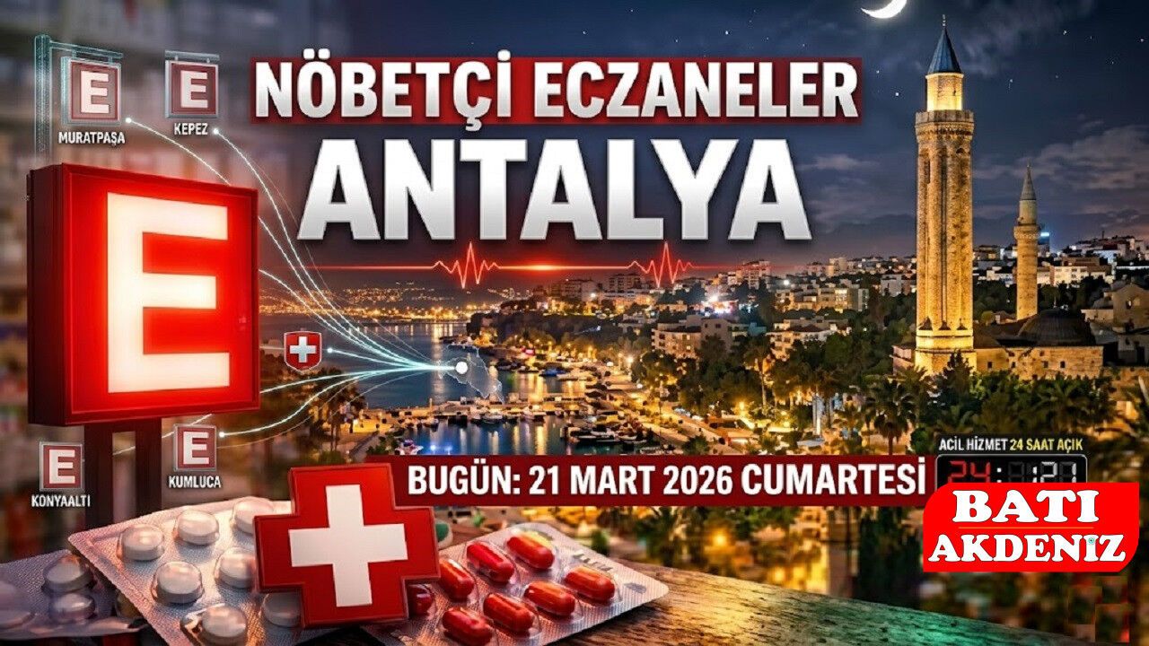 Antalya ve tüm ilçelerinde 21 Mart 2026 Cumartesi günü hizmet veren nöbetçi eczanelerin tam listesi yayında! Muratpaşa, Konyaaltı, Kepez, Alanya, Manavgat ve Kumluca başta olmak üzere Antalya'da size en yakın nöbetçi eczaneyi hemen öğrenin.
