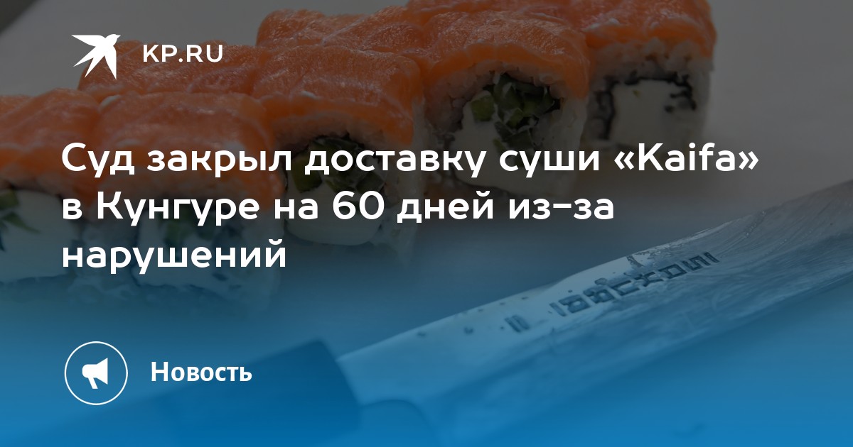 В Кунгуре суд временно остановил работу службы доставки суши и роллов «Kaifa». Решение принято после рассмотрения дела об административном правонарушении 19 марта 2026 года.