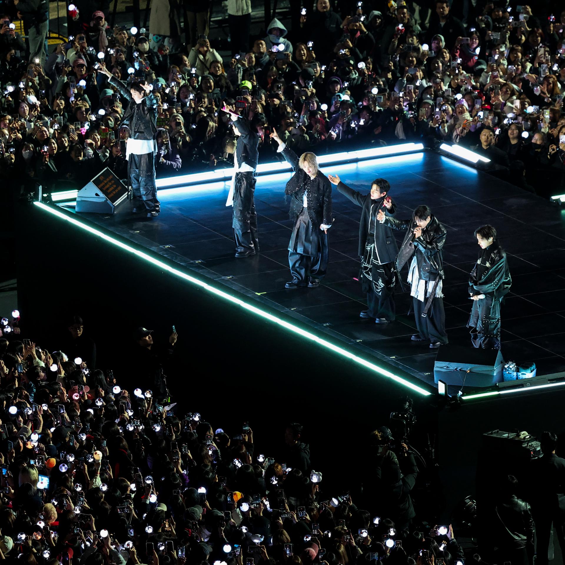 Die K-Pop-Band BTS aus Südkorea ist nach einer mehr als dreijährigen Pause erstmals wieder aufgetreten. Mehr als 200.000 Zuschauer verfolgten das kostenlose Konzert in der Innenstadt der Hauptstadt Seoul. Für den Auftritt wurden der U-Bahn- und Busverkehr unterbrochen sowie Museen vorübergehend geschlossen.