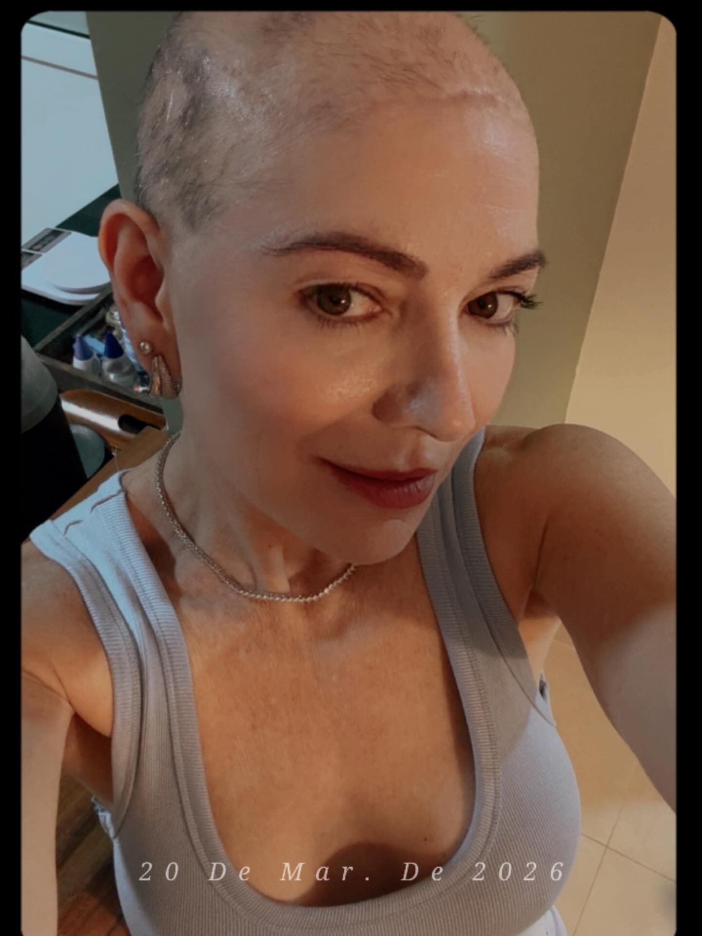 "O que sobrou tirei… estou careca… E encontrei uma versão ainda mais forte de mim. Autoestima não se perde. Se constrói.✨