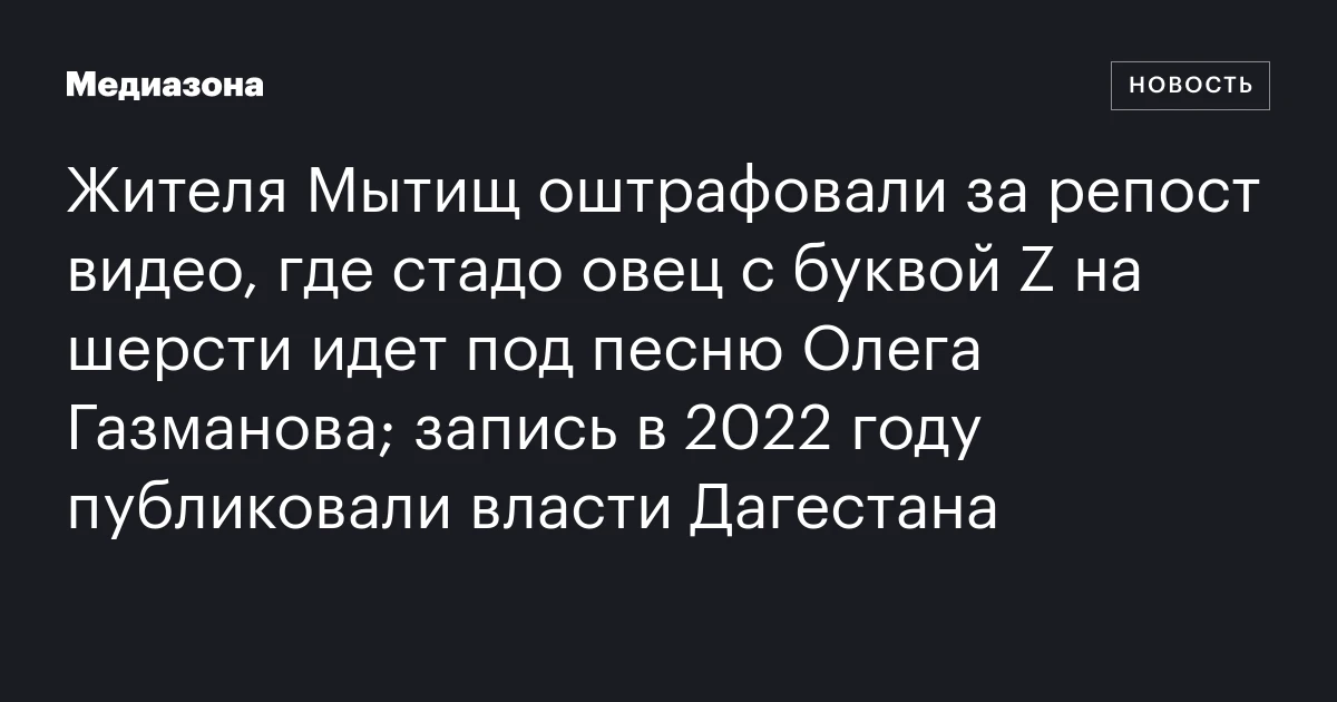 Жителя Мытищ оштрафовали за репост видео, где стадо овец с буквой Z на шерсти идет под песню Олега Газманова; запись в 2022 году публиковали власти Дагестана