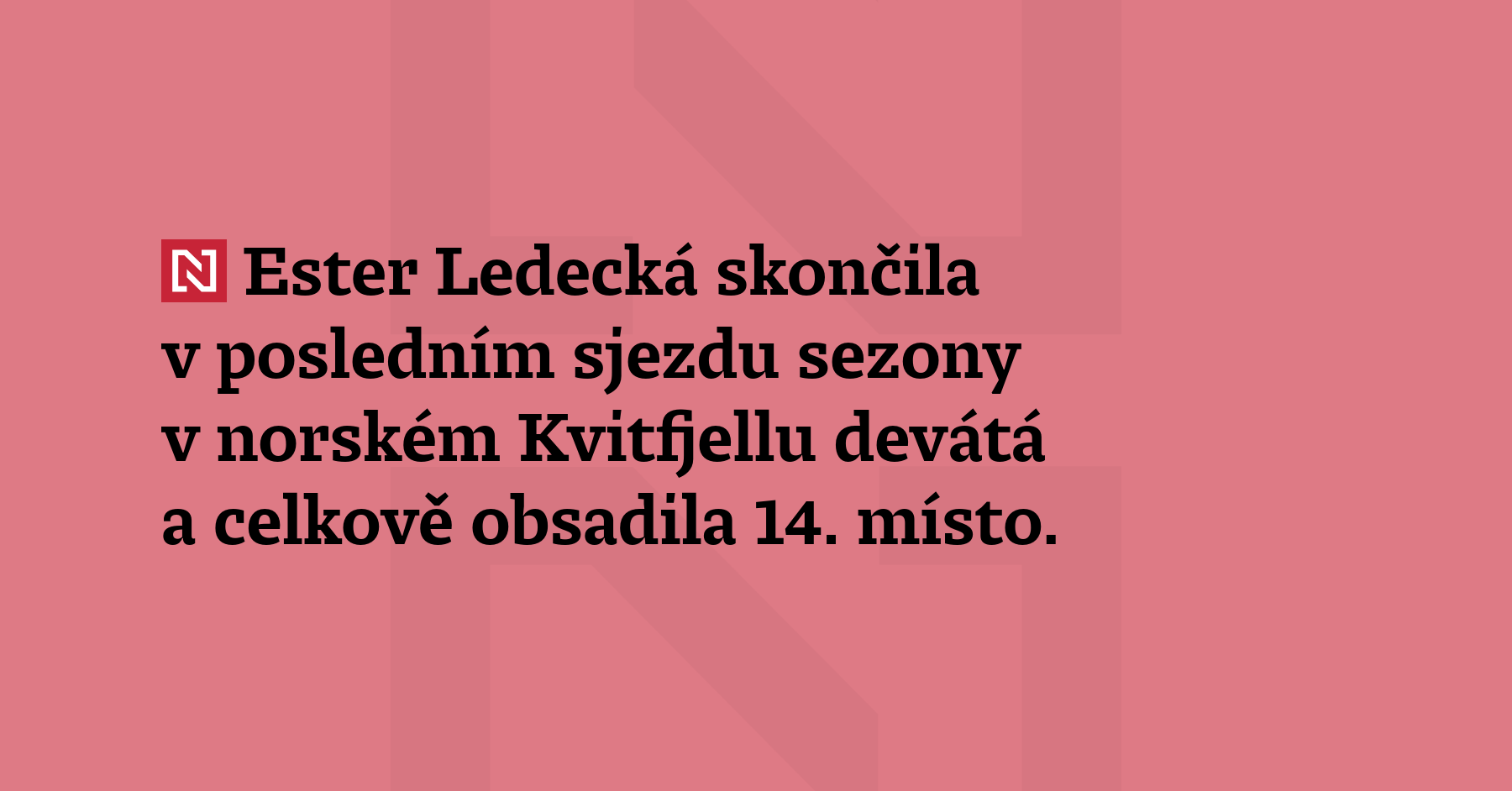 Ester Ledecká skončila v posledním sjezdu sezony v norském Kvitfjellu devátá a celkově obsadila 14. místo. Malý glóbus v této disciplíně získala poprvé v kariéře Italka Laura Pirovano, která dnešní závod vyhrála. (České noviny)