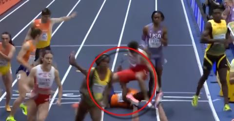 Απρόοπτο συνέβη στον τελικό της μεικτής σκυταλοδρομίας στο Παγκόσμιο Πρωτάθλημα Κλειστού Στίβου, το οποίο διεξάγεται στην πόλη Τορούν της Πολωνίας. Στην κρίσιμη φάση των αλλαγών, ο Αμερικανός αθλητής έχασε την ισορροπία του και έπεσε στο έδαφος κατά την προσπάθεια να παραδώσει τη σκυτάλη στη συναθλήτριά του. Όπως φαίνεται στο βίντεο που ακολουθεί, η πτώση του προκάλεσε... χάος, καθώς ακολούθησαν άλλοι τρεις αθλητές, οι οποίοι παρεσύρθηκαν, έπεσαν στο έδαφος και έχασαν τον ρυθμό τους. Η ομάδα των Ηνωμένων Πολιτειών, η οποία θεωρούνταν φαβορί για τη νίκη, βρέθηκε εκτός ρυθμού και δεν κατάφερε να ανακάμψει από το λάθος. Αντίθετα, το Βέλγιο εκμεταλλεύτηκε πλήρως την αναστάτωση και κατάφερε να κατακτήσει την πρωτιά, με την Ισπανία και τη Τζαμάικα να συμπληρώνουν την πρώτη τριάδα. Πηγή: Πρώτο Θέμα