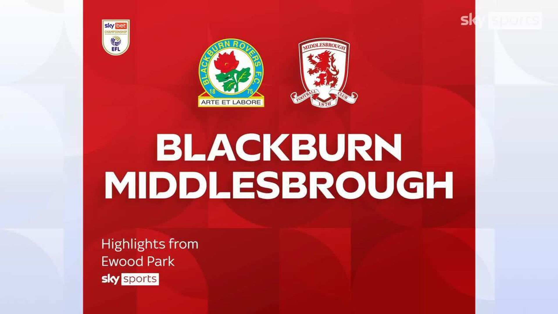 Highlights of the Sky Bet Championship clash between Blackburn Rovers and Middlesbrough.