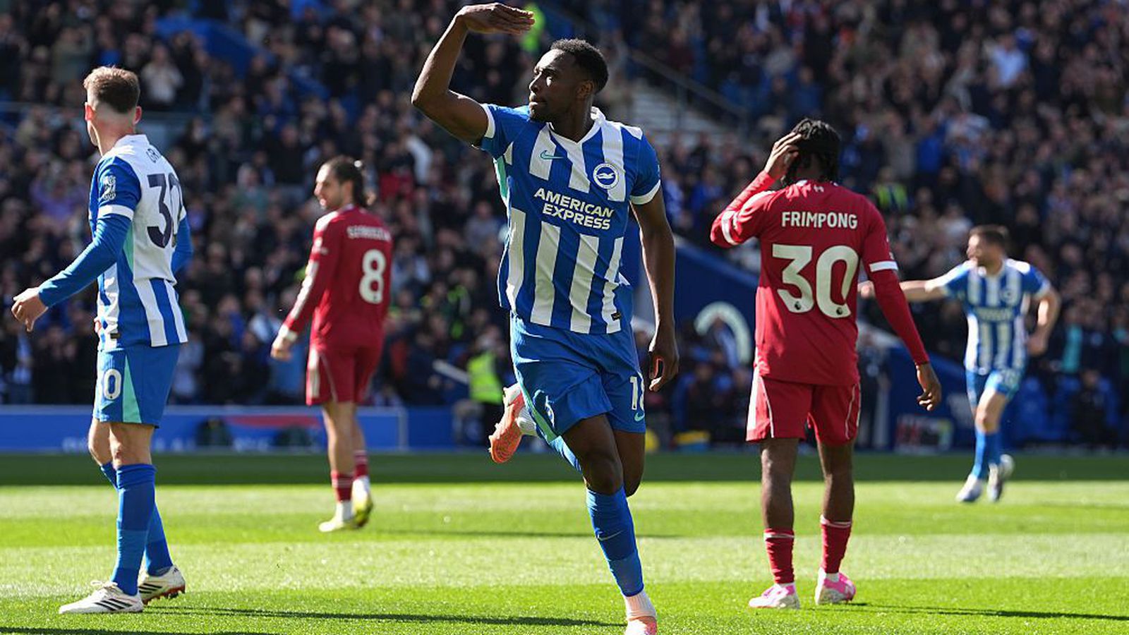 Brighton & Hove Albion vann 2-1 heimasigur á Liverpool á suðurströnd Englands í dag. Liðið blandar sér af krafti í baráttu um Meistaradeildarsæti á meðan Liverpool leitar enn stöðugleika.