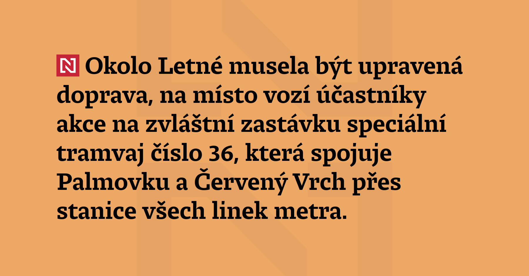 Okolo Letné musela být upravená doprava, na místo vozí účastníky akce na zvláštní zastávku speciální tramvaj číslo 36, která spojuje Palmovku a Červený Vrch přes stanice všech linek metra. Pořadatelé před akcí vyzvali, aby lidé přijížděli právě hromadnou dopravou. (ČT24)
