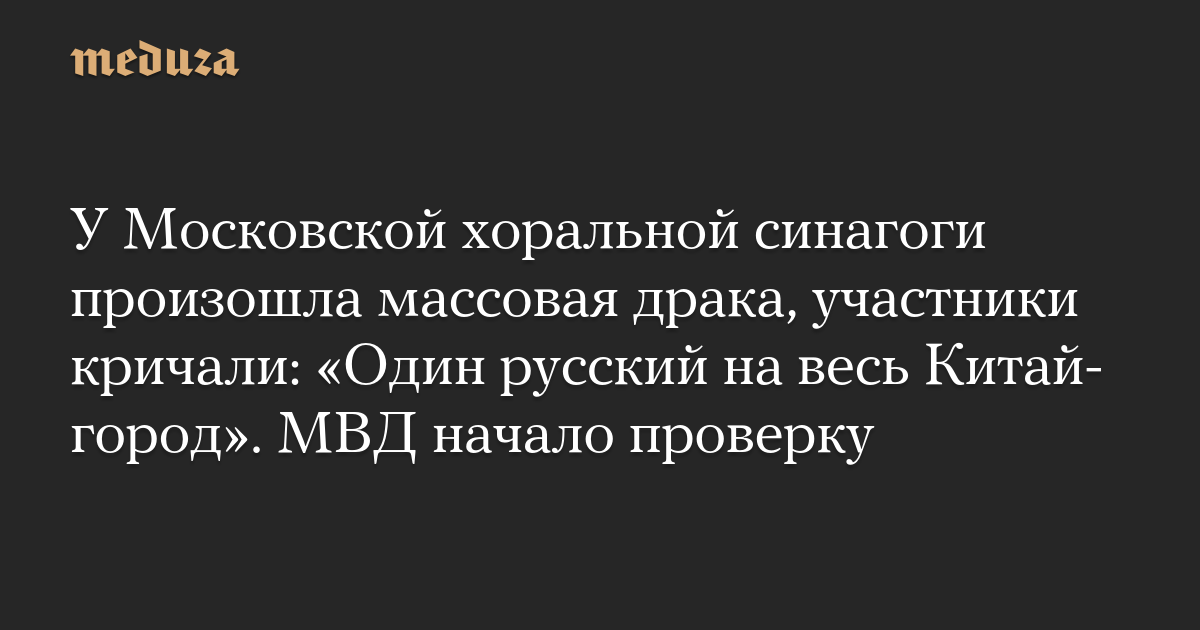 У Московской хоральной синагоги произошла массовая драка, участники кричали: «Один русский на весь Китай-город». МВД начало проверку