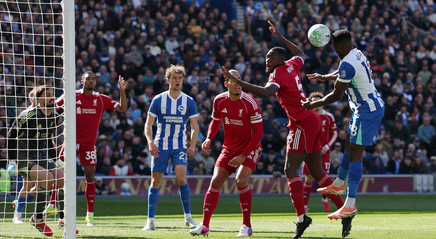 O Brighton venceu em casa o Liverpool por 2-1, na 31.ª jornada da Liga inglesa, e os 'reds' vacilaram na luta por uma vaga na Liga dos Campeões da próxima época.