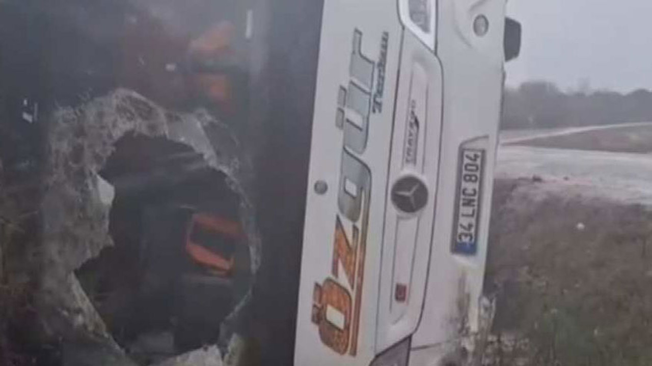 İstanbul Çatalca’da yağış nedeniyle kayganlaşan yolda midibüs devrildi. Kazada 3 polis yaralandı.