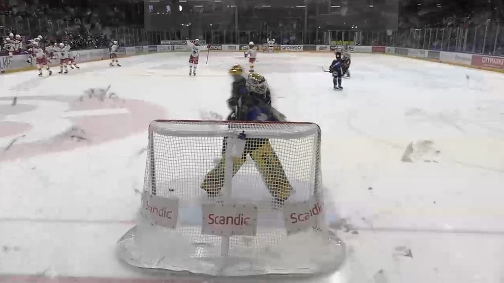 Dylan Fabre teki Ässille 2–1-jatkoerämaalin SM-liigan pudotuspeleissä Kiekko-Espoota vastaan Iikka Kangasniemen kiekonmenetyksen jälkeen.