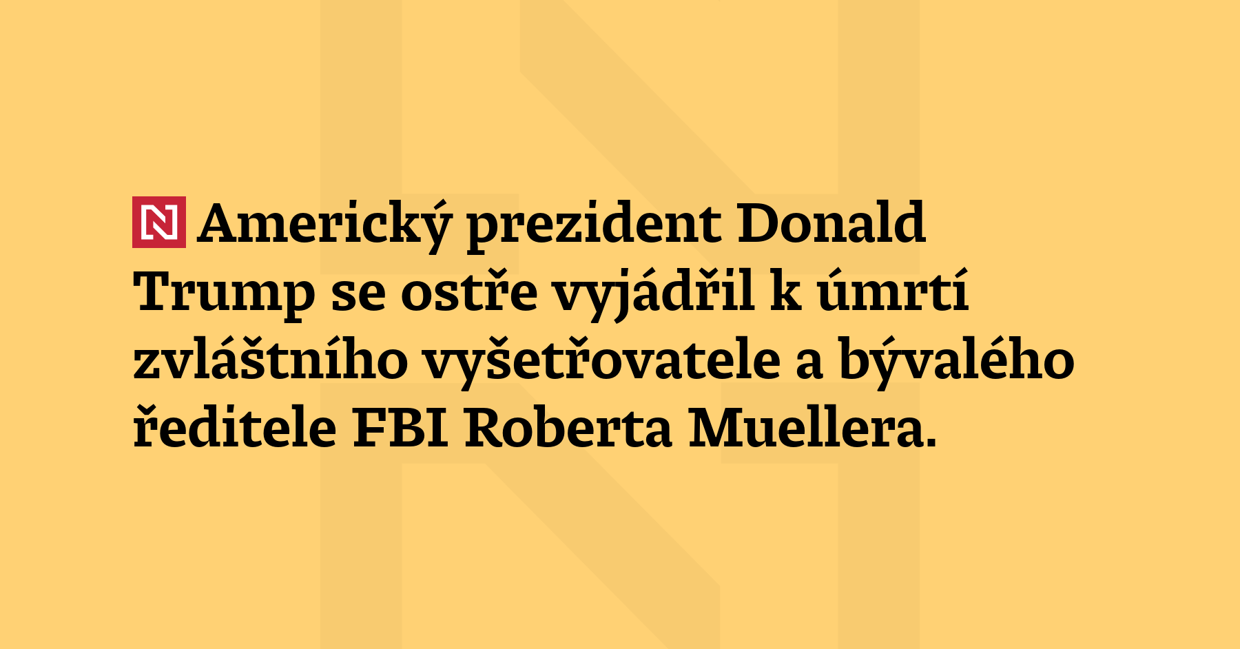 Americký prezident Donald Trump se ostře vyjádřil k úmrtí zvláštního vyšetřovatele a bývalého ředitele FBI Roberta Muellera. „To je dobře. Jsem rád, že je mrtvý. Už nemůže ubližovat nevinným lidem,“ napsal na své síti Truth Social. (Fox News)